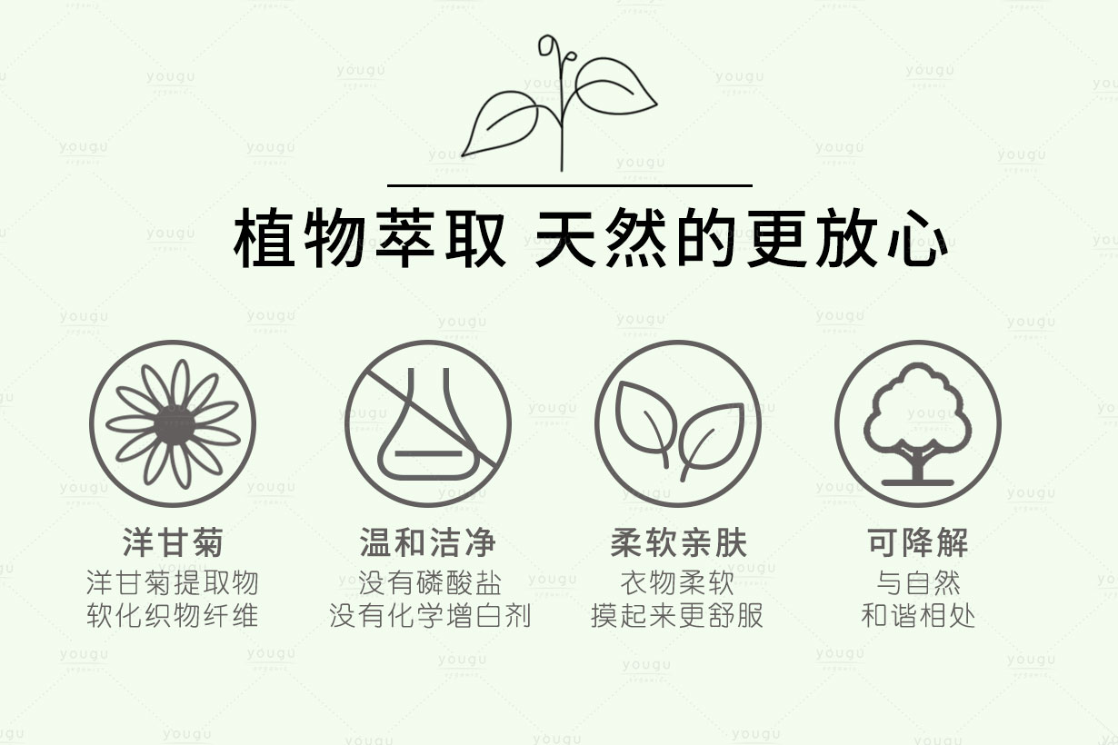 后生物發酵和其他植物成分溫和地呵護著織物纖維。使衣服更柔軟,摸起來更舒服,并賦予衣物清新的香味
